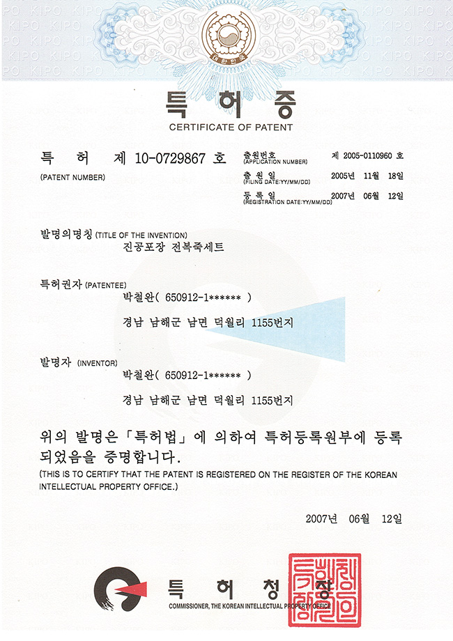 다양한 특허와 인증이 우리의 가치를 말해줍니다.