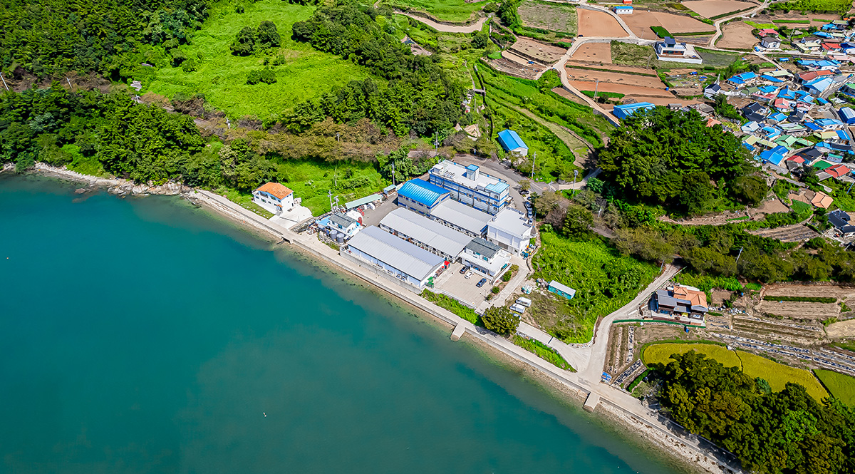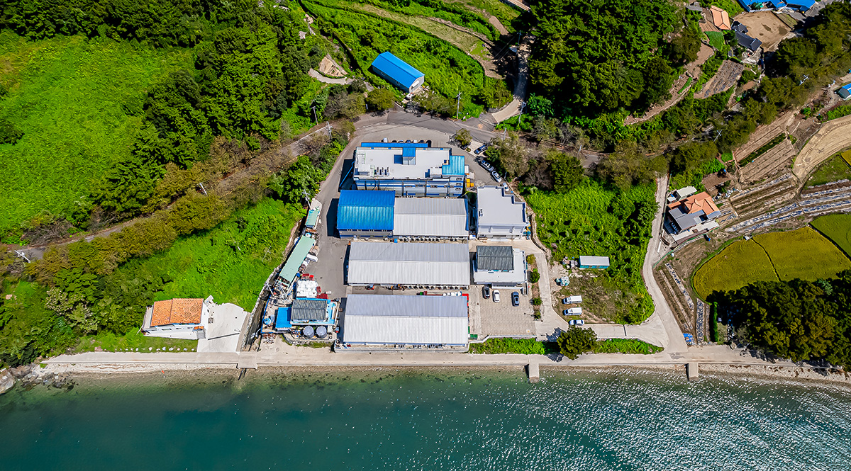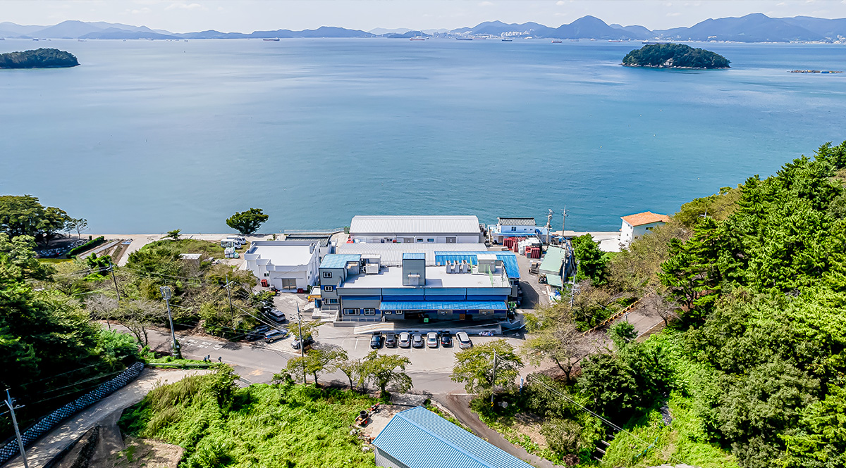 보물섬이라 불리는 남해의 청정 해역에 위치한 늘푸른영어조합법인입니다.
