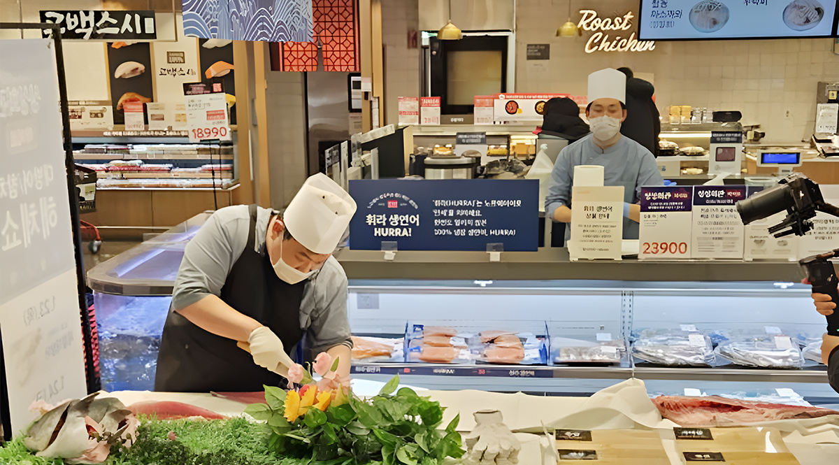 아발로니아는 대형마트에 입점하고있는 수산 전문 회코너를 운영하고 있습니다.